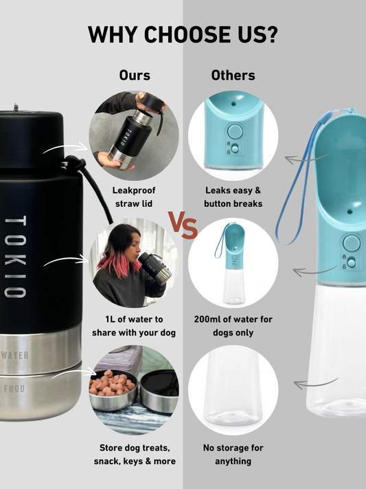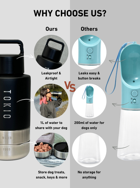 I love my white Tokio bottle! I take it out with my furry buddy every weekend, but also take it to work with me during the week. (That snack compartment isn't just for doggie-treats 😉, it fits human snacks too!!)