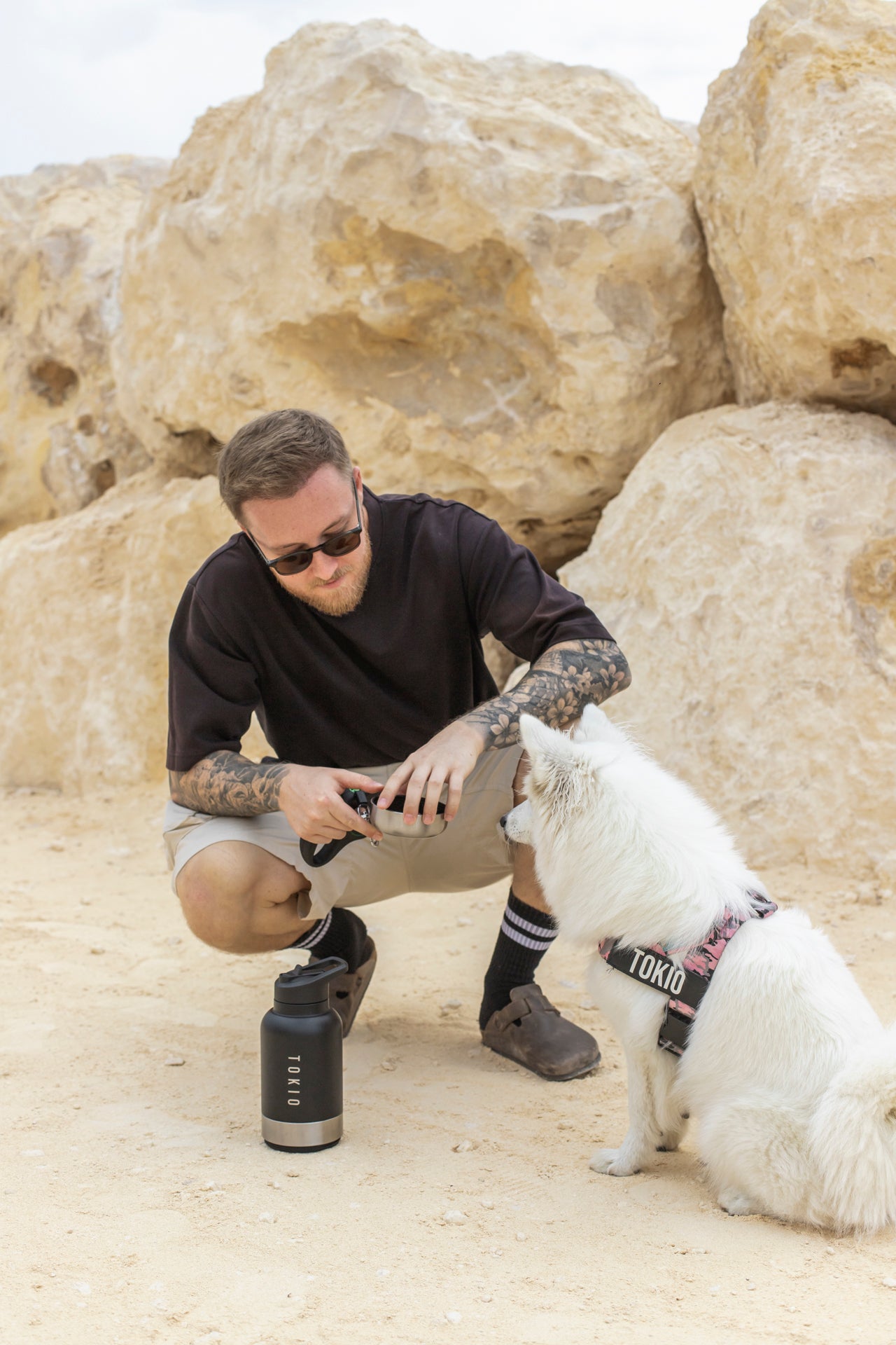 This sleek, functional bag is designed to fit your TOKIO Bottle perfectly, with extra room for your phone, keys, all your essentials and even a handy poop bag dispenser.