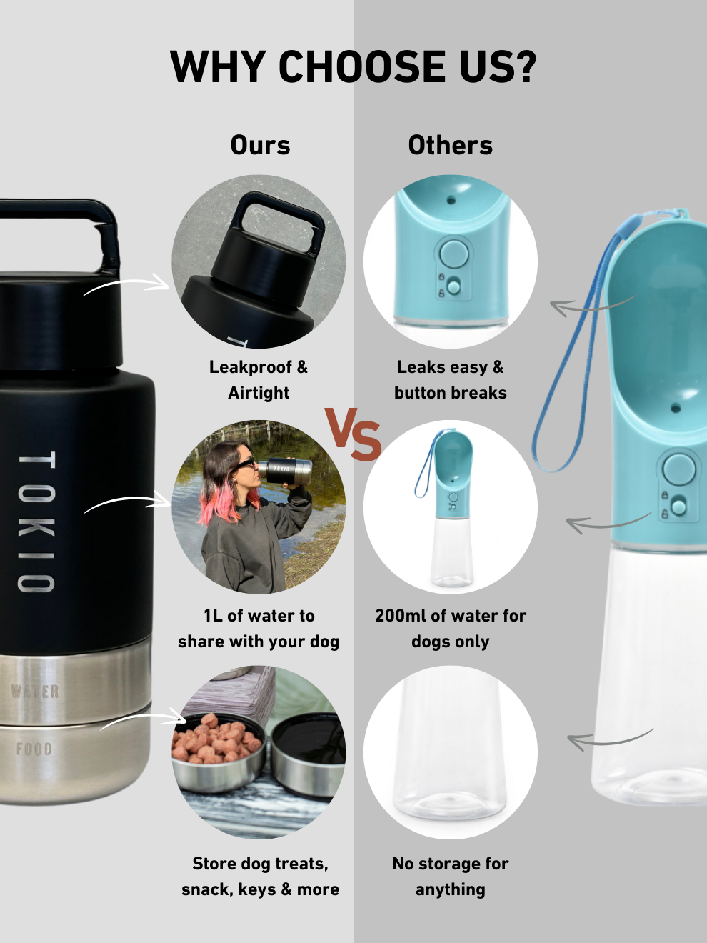 Equip yourself and your pup with the ultimate gear for every outing! The TOKIO Bottle keeps your dog hydrated with fresh water on hot days, while the TOKIO Bag lets you carry essentials hands-free with spacious pockets and a built-in poop bag dispenser. Combined with the TOKIO Cooling Harness that reduces your pups temperature by up to 28%, your pup just got a whole lot happier.